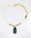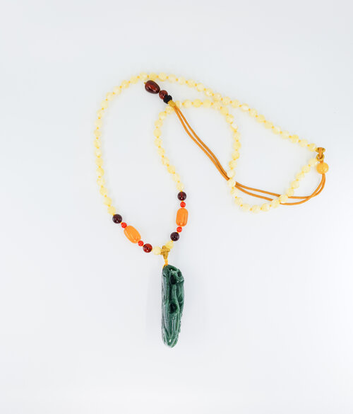 Hunter Green Jadeite with Phoenix Engraving and Amber Beads Necklace